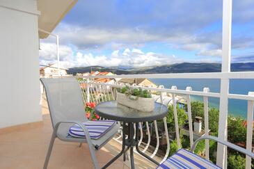 Ferienwohnung bietet Platz für 6 Gäste. Die Betten sind in Schlafzimmern, die es 2 gibt, und in Wohnzimmer, innerhalb einer Gesamtfläche von 42m2, angeordnet. Die Gäste haben einen eigenen Balkon zur Verfügung, auf der sie in warmen Sommernächten genießen können. Das Apartment bietet Meerblick. Es ist erlaubt, Speisen auf dem Gemeinschafts-Grill vorzubereiten. In der Unterkunftseinheit besteht die Möglichkeit des Mitbringens von Haustieren gegen Aufpreis.