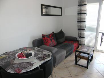 Ferienwohnung bietet Platz für 5 Gäste. Die Betten sind in Schlafzimmern, die es 2 gibt, innerhalb einer Gesamtfläche von 45m2, angeordnet. Die Gäste haben eine eigene Terrasse zur Verfügung, auf der sie in warmen Sommernächten genießen können. Das Apartment bietet Meerblick. Es ist erlaubt, Speisen auf dem Gemeinschafts-Grill vorzubereiten. Während ihres Aufenthalts können Gäste das gemeinsam zur Nutzung stehende Schwimmbad benutzen. In der Unterkunftseinheit besteht die Möglichkeit des Mitbringens von Haustieren gegen Aufpreis.