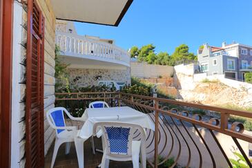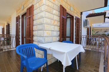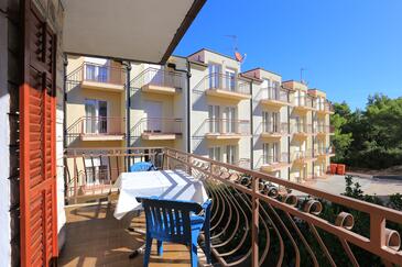 Ferienwohnung bietet Platz für 6 Gäste. Die Betten sind in Schlafzimmern, die es 3 gibt, innerhalb einer Gesamtfläche von 78m2, angeordnet. Die Gäste haben einen eigenen Balkon zur Verfügung, auf der sie in warmen Sommernächten genießen können. Das Apartment bietet Meerblick.