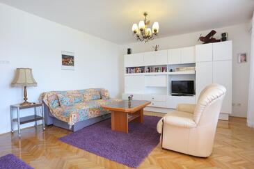 Ferienwohnung bietet Platz für 6 Gäste. Die Betten sind in Schlafzimmern, die es 2 gibt, und in Wohnzimmer, innerhalb einer Gesamtfläche von 92m2, angeordnet. Die Gäste haben einen eigenen Balkon zur Verfügung, auf der sie in warmen Sommernächten genießen können. Das Apartment bietet Meerblick. Es ist erlaubt, Speisen auf dem Gemeinschafts-Grill vorzubereiten. In der Unterkunftseinheit besteht die Möglichkeit des Mitbringens von Haustieren gegen Aufpreis.