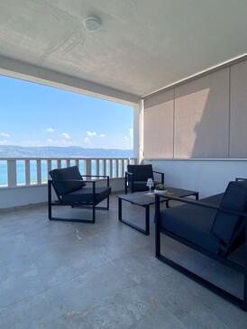 Ferienwohnung bietet Platz für 4 Gäste. Die Betten sind in Schlafzimmern, die es 2 gibt, innerhalb einer Gesamtfläche von 40m2, angeordnet. Die Gäste haben eine eigene Terrasse zur Verfügung, auf der sie in warmen Sommernächten genießen können. Das Apartment bietet Meerblick. Es ist erlaubt, Speisen auf dem Gemeinschafts-Grill vorzubereiten.