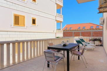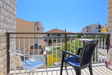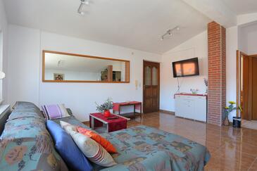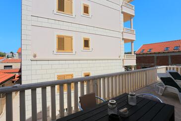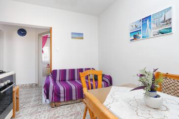 Ferienwohnung bietet Platz für 5 Gäste. Die Betten sind in Schlafzimmern, die es 1 gibt, und in Wohnzimmer, innerhalb einer Gesamtfläche von 60m2, angeordnet. Die Gäste haben eine eigene Terrasse zur Verfügung, auf der sie in warmen Sommernächten genießen können. Das Apartment bietet Meerblick. Es ist erlaubt, Speisen auf dem Gemeinschafts-Grill vorzubereiten. In der Unterkunftseinheit besteht die Möglichkeit des Mitbringens von Haustieren gegen Aufpreis.