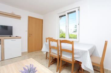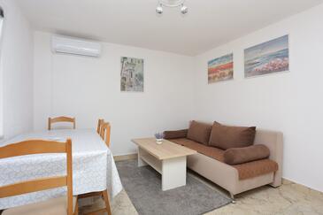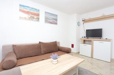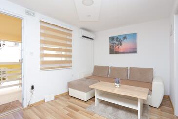 Ferienwohnung bietet Platz für 5 Gäste. Die Betten sind in Schlafzimmern, die es 2 gibt, und in Wohnzimmer, innerhalb einer Gesamtfläche von 44m2, angeordnet. Die Gäste haben einen eigenen Balkon zur Verfügung, auf der sie in warmen Sommernächten genießen können. Das Apartment bietet Meerblick. Es ist erlaubt, Speisen auf dem Gemeinschafts-Grill vorzubereiten.