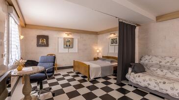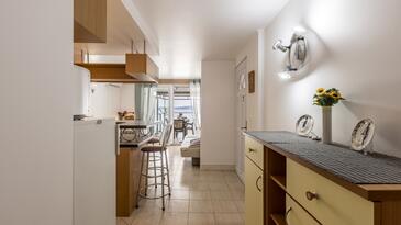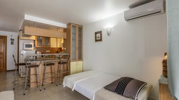 Ferienwohnung bietet Platz für 4 Gäste. Die Betten sind in Schlafzimmern, die es 1 gibt, und in Wohnzimmer, innerhalb einer Gesamtfläche von 49m2, angeordnet. Die Gäste haben eine eigene Terrasse zur Verfügung, auf der sie in warmen Sommernächten genießen können. Das Apartment bietet Meerblick. Es ist erlaubt, Speisen auf dem Gemeinschafts-Grill vorzubereiten.