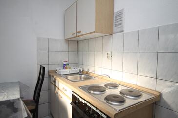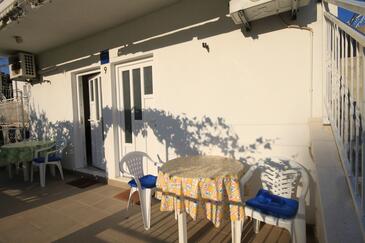 Ferienwohnung bietet Platz für 5 Gäste. Die Betten sind in Schlafzimmern, die es 2 gibt, und in Esszimmer, innerhalb einer Gesamtfläche von 45m2, angeordnet. Die Gäste haben eine eigene Terrasse zur Verfügung, auf der sie in warmen Sommernächten genießen können. Das Apartment bietet Meerblick. Es ist erlaubt, Speisen auf dem Gemeinschafts-Grill vorzubereiten.
