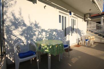 Ferienwohnung bietet Platz für 5 Gäste. Die Betten sind in Schlafzimmern, die es 2 gibt, und in Esszimmer, innerhalb einer Gesamtfläche von 45m2, angeordnet. Die Gäste haben eine eigene Terrasse zur Verfügung, auf der sie in warmen Sommernächten genießen können. Das Apartment bietet Meerblick. Es ist erlaubt, Speisen auf dem Gemeinschafts-Grill vorzubereiten.