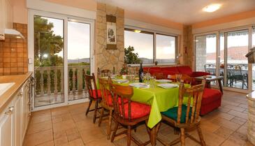 Haus bietet Platz für 10 Gäste. Die Betten sind in Schlafzimmern, die es 4 gibt, und in Wohnzimmer, innerhalb einer Gesamtfläche von 134m2, angeordnet. Die Gäste haben eine eigene Terrasse zur Verfügung, auf der sie in warmen Sommernächten genießen können. Das Haus bietet Meerblick. Für vollen Genuss und Entspannung gibt es einen privaten Grill für Gäste dieser Unterkunft. Während ihres Aufenthalts können sich Gäste im privaten Schwimmbad entspannen. In der Unterkunftseinheit besteht die Möglichkeit des Mitbringens von Haustieren gegen Aufpreis. Räume der gebuchten Unterkunftseinheit werden nicht in eine Ganze verbunden.