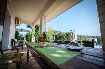 Haus bietet Platz für 9 Gäste. Die Betten sind in Schlafzimmern, die es 4 gibt, und in Wohnzimmer, innerhalb einer Gesamtfläche von 122m2, angeordnet. Die Gäste haben eine eigene Terrasse zur Verfügung, auf der sie in warmen Sommernächten genießen können. Das Haus bietet Meerblick. Für vollen Genuss und Entspannung gibt es einen privaten Grill für Gäste dieser Unterkunft. Während ihres Aufenthalts können sich Gäste im privaten Schwimmbad entspannen.