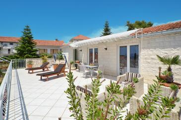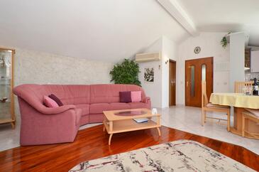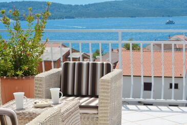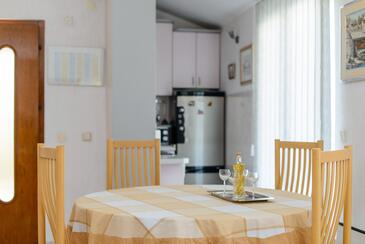 Ferienwohnung bietet Platz für 4 Gäste. Die Betten sind in Schlafzimmern, die es 2 gibt, innerhalb einer Gesamtfläche von 72m2, angeordnet. Die Gäste haben eine eigene Terrasse zur Verfügung, auf der sie in warmen Sommernächten genießen können. Das Apartment bietet Meerblick. Es ist erlaubt, Speisen auf dem Gemeinschafts-Grill vorzubereiten.