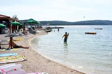 Ferienwohnung bietet Platz für 4 Gäste. Die Betten sind in Schlafzimmern, die es 2 gibt, innerhalb einer Gesamtfläche von 72m2, angeordnet. Die Gäste haben eine eigene Terrasse zur Verfügung, auf der sie in warmen Sommernächten genießen können. Das Apartment bietet Meerblick. Es ist erlaubt, Speisen auf dem Gemeinschafts-Grill vorzubereiten.