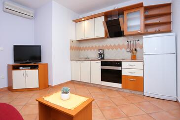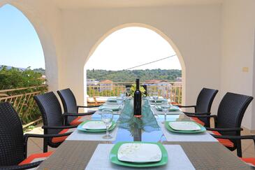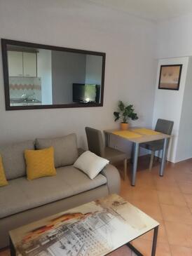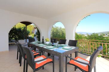 Ferienwohnung bietet Platz für 8 Gäste. Die Betten sind in Schlafzimmern, die es 3 gibt, und in Wohnzimmer, innerhalb einer Gesamtfläche von 73m2, angeordnet. Die Gäste haben eine eigene Terrasse zur Verfügung, auf der sie in warmen Sommernächten genießen können. Das Apartment bietet Meerblick. Es ist erlaubt, Speisen auf dem Gemeinschafts-Grill vorzubereiten. Während ihres Aufenthalts können Gäste das gemeinsam zur Nutzung stehende Schwimmbad benutzen.