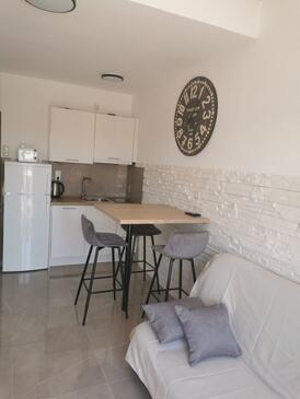 Ferienwohnung bietet Platz für 4 Gäste. Die Betten sind in Schlafzimmern, die es 1 gibt, und in Wohnzimmer, innerhalb einer Gesamtfläche von 30m2, angeordnet. Die Gäste haben eine eigene Terrasse zur Verfügung, auf der sie in warmen Sommernächten genießen können. Das Apartment bietet Meerblick. Es ist erlaubt, Speisen auf dem Gemeinschafts-Grill vorzubereiten.