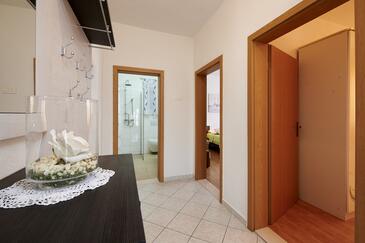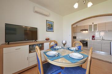 Ferienwohnung bietet Platz für 5 Gäste. Die Betten sind in Schlafzimmern, die es 2 gibt, und in Wohnzimmer, innerhalb einer Gesamtfläche von 43m2, angeordnet. Die Gäste haben eine eigene Terrasse zur Verfügung, auf der sie in warmen Sommernächten genießen können. Das Apartment bietet Meerblick. Es ist erlaubt, Speisen auf dem Gemeinschafts-Grill vorzubereiten.