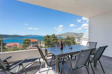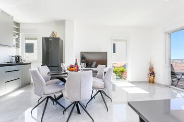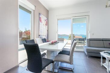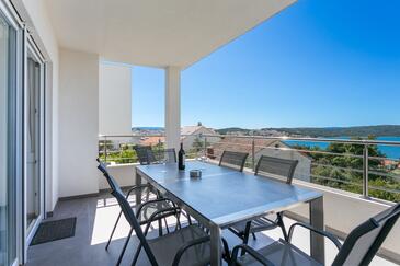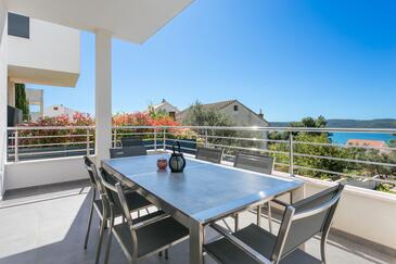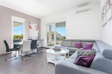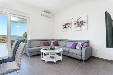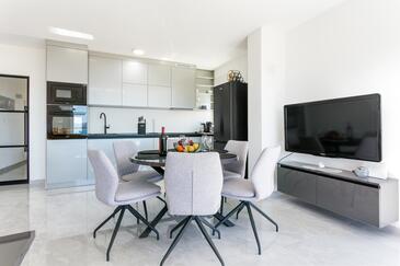 Ferienwohnung bietet Platz für 8 Gäste. Die Betten sind in Schlafzimmern, die es 3 gibt, und in Wohnzimmer, innerhalb einer Gesamtfläche von 99m2, angeordnet. Die Gäste haben eine eigene Terrasse zur Verfügung, auf der sie in warmen Sommernächten genießen können. Das Apartment bietet Meerblick. Während ihres Aufenthalts können Gäste das gemeinsam zur Nutzung stehende Schwimmbad benutzen.