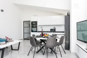 Ferienwohnung bietet Platz für 8 Gäste. Die Betten sind in Schlafzimmern, die es 3 gibt, und in Wohnzimmer, innerhalb einer Gesamtfläche von 99m2, angeordnet. Die Gäste haben eine eigene Terrasse zur Verfügung, auf der sie in warmen Sommernächten genießen können. Das Apartment bietet Meerblick. Während ihres Aufenthalts können Gäste das gemeinsam zur Nutzung stehende Schwimmbad benutzen.
