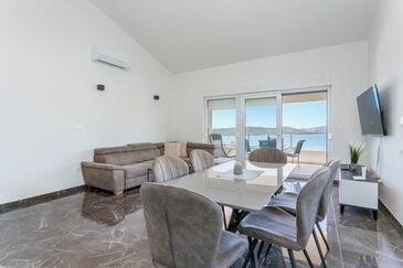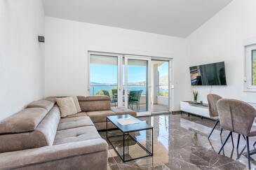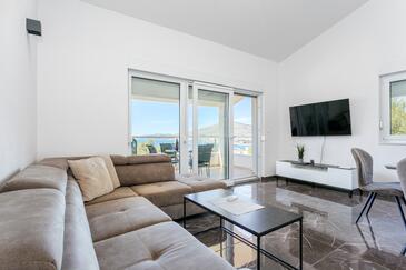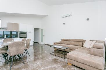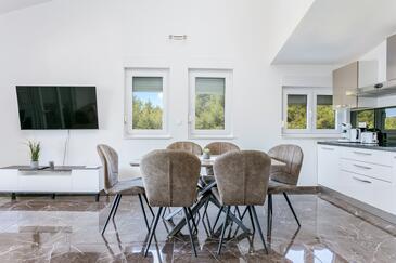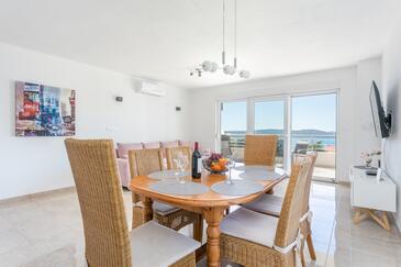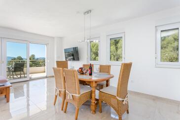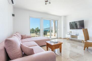 Ferienwohnung bietet Platz für 6 Gäste. Die Betten sind in Schlafzimmern, die es 2 gibt, und in Wohnzimmer, innerhalb einer Gesamtfläche von 89m2, angeordnet. Die Gäste haben eine eigene Terrasse zur Verfügung, auf der sie in warmen Sommernächten genießen können. Das Apartment bietet Meerblick. Während ihres Aufenthalts können Gäste das gemeinsam zur Nutzung stehende Schwimmbad benutzen.