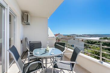 Ferienwohnung bietet Platz für 6 Gäste. Die Betten sind in Schlafzimmern, die es 2 gibt, und in Wohnzimmer, innerhalb einer Gesamtfläche von 89m2, angeordnet. Die Gäste haben eine eigene Terrasse zur Verfügung, auf der sie in warmen Sommernächten genießen können. Das Apartment bietet Meerblick. Während ihres Aufenthalts können Gäste das gemeinsam zur Nutzung stehende Schwimmbad benutzen.