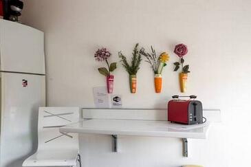 Studio bietet Platz für 3 Gäste. Die Betten sind in Schlafzimmern, die es 1 gibt, und in Wohnzimmer, innerhalb einer Gesamtfläche von 20m2, angeordnet. Die Gäste haben eine eigene Terrasse zur Verfügung, auf der sie in warmen Sommernächten genießen können. Es ist erlaubt, Speisen auf dem Gemeinschafts-Grill vorzubereiten. In der Unterkunftseinheit besteht die Möglichkeit des Mitbringens von Haustieren gegen Aufpreis.