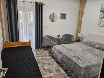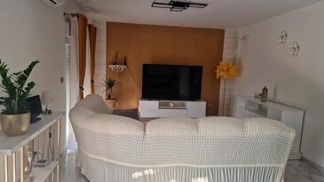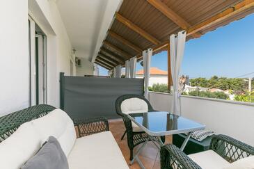 Ferienwohnung bietet Platz für 8 Gäste. Die Betten sind in Schlafzimmern, die es 4 gibt, innerhalb einer Gesamtfläche von 110m2, angeordnet. Die Gäste haben einen eigenen Balkon zur Verfügung, auf der sie in warmen Sommernächten genießen können. Das Apartment bietet Meerblick. Es ist erlaubt, Speisen auf dem Gemeinschafts-Grill vorzubereiten. In der Unterkunftseinheit besteht die Möglichkeit des Mitbringens von Haustieren, und die Dienstleistung ist im Preis der Unterkunft enthalten.