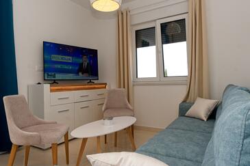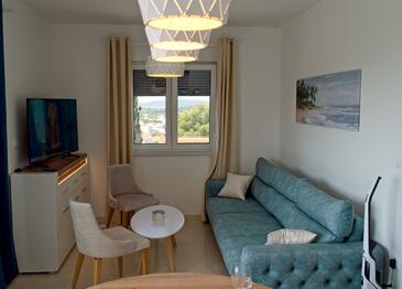 Ferienwohnung bietet Platz für 5 Gäste. Die Betten sind in Schlafzimmern, die es 2 gibt, und in Wohnzimmer, innerhalb einer Gesamtfläche von 58m2, angeordnet. Die Gäste haben eine eigene Terrasse zur Verfügung, auf der sie in warmen Sommernächten genießen können. Das Apartment bietet Meerblick. Für vollen Genuss und Entspannung gibt es einen privaten Grill für Gäste dieser Unterkunft. Während ihres Aufenthalts können Gäste das gemeinsam zur Nutzung stehende Schwimmbad benutzen.