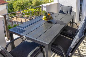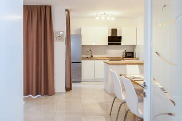 Ferienwohnung bietet Platz für 5 Gäste. Die Betten sind in Schlafzimmern, die es 2 gibt, und in Wohnzimmer, innerhalb einer Gesamtfläche von 75m2, angeordnet. Die Gäste haben einen eigenen Balkon zur Verfügung, auf der sie in warmen Sommernächten genießen können. Es ist erlaubt, Speisen auf dem Gemeinschafts-Grill vorzubereiten.