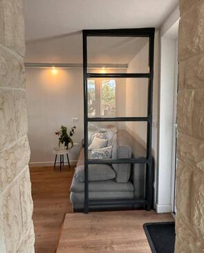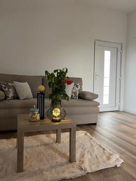 Haus bietet Platz für 8 Gäste. Die Betten sind in Schlafzimmern, die es 2 gibt, und in Wohnzimmer, innerhalb einer Gesamtfläche von 100m2, angeordnet. Die Gäste haben einen eigenen Balkon zur Verfügung, auf der sie in warmen Sommernächten genießen können. Das Haus bietet Meerblick. Für vollen Genuss und Entspannung gibt es einen privaten Grill für Gäste dieser Unterkunft.