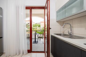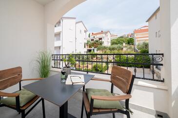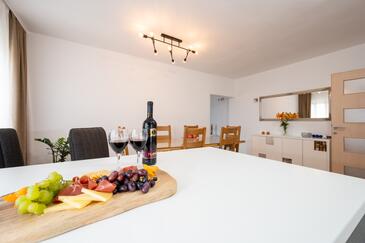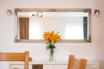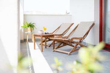 Ferienwohnung bietet Platz für 5 Gäste. Die Betten sind in Schlafzimmern, die es 2 gibt, und in Wohnzimmer, innerhalb einer Gesamtfläche von 90m2, angeordnet. Die Gäste haben eine eigene Terrasse zur Verfügung, auf der sie in warmen Sommernächten genießen können. Das Apartment bietet Meerblick.