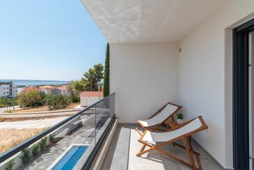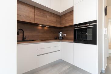 Ferienwohnung bietet Platz für 4 Gäste. Die Betten sind in Schlafzimmern, die es 2 gibt, innerhalb einer Gesamtfläche von 56m2, angeordnet. Die Gäste haben einen eigenen Balkon zur Verfügung, auf der sie in warmen Sommernächten genießen können. Das Apartment bietet Meerblick. Während ihres Aufenthalts können Gäste das gemeinsam zur Nutzung stehende Schwimmbad benutzen.