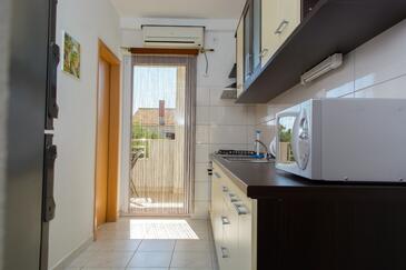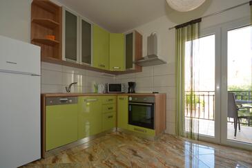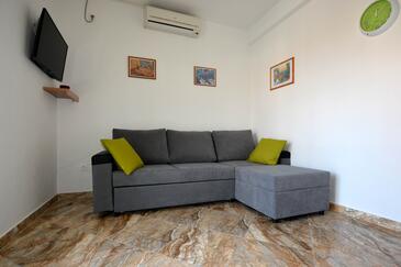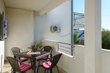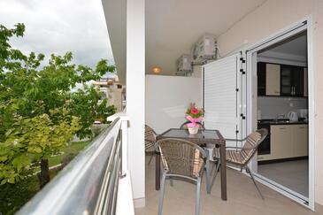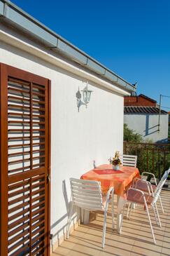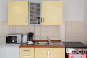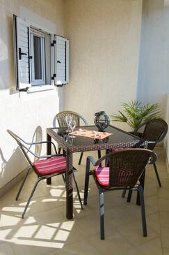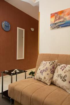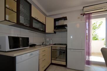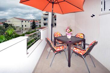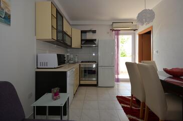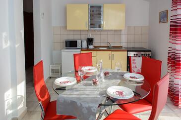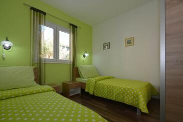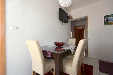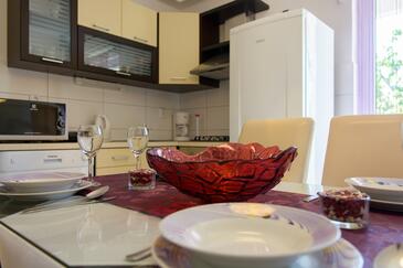 Ferienwohnung bietet Platz für 5 Gäste. Die Betten sind in Schlafzimmern, die es 2 gibt, und in Esszimmer, innerhalb einer Gesamtfläche von 58m2, angeordnet. Die Gäste haben eine eigene Terrasse zur Verfügung, auf der sie in warmen Sommernächten genießen können. Es ist erlaubt, Speisen auf dem Gemeinschafts-Grill vorzubereiten.
