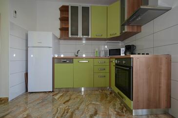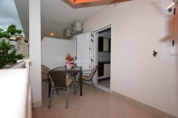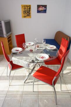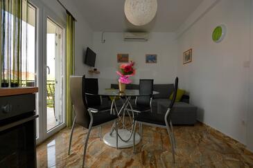 Ferienwohnung bietet Platz für 5 Gäste. Die Betten sind in Schlafzimmern, die es 2 gibt, und in Esszimmer, innerhalb einer Gesamtfläche von 58m2, angeordnet. Die Gäste haben eine eigene Terrasse zur Verfügung, auf der sie in warmen Sommernächten genießen können. Es ist erlaubt, Speisen auf dem Gemeinschafts-Grill vorzubereiten.