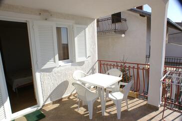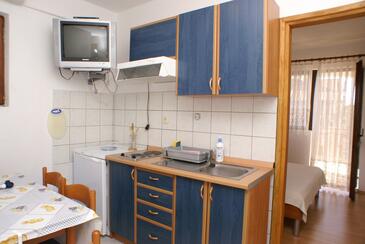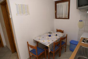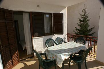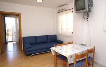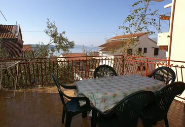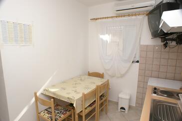 Ferienwohnung bietet Platz für 4 Gäste. Die Betten sind in Schlafzimmern, die es 1 gibt, und in Esszimmer, innerhalb einer Gesamtfläche von 30m2, angeordnet. Die Gäste haben eine eigene Terrasse zur Verfügung, auf der sie in warmen Sommernächten genießen können. Das Apartment bietet Meerblick. Es ist erlaubt, Speisen auf dem Gemeinschafts-Grill vorzubereiten.