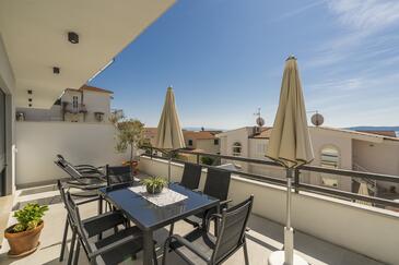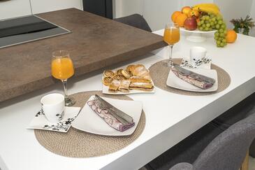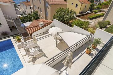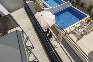 Ferienwohnung bietet Platz für 4 Gäste. Die Betten sind in Schlafzimmern, die es 2 gibt, innerhalb einer Gesamtfläche von 76m2, angeordnet. Die Gäste haben eine eigene Terrasse zur Verfügung, auf der sie in warmen Sommernächten genießen können. Das Apartment bietet Meerblick. Für vollen Genuss und Entspannung gibt es einen privaten Grill für Gäste dieser Unterkunft. Während ihres Aufenthalts können Gäste das gemeinsam zur Nutzung stehende Schwimmbad benutzen.