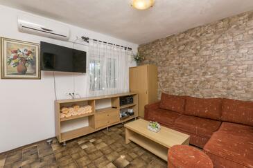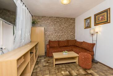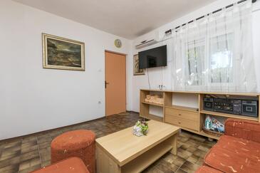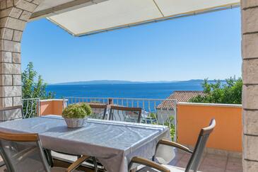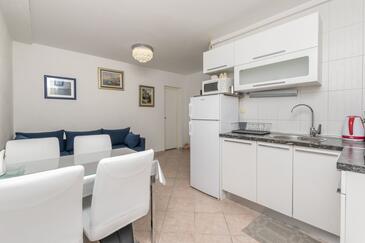 Ferienwohnung bietet Platz für 5 Gäste. Die Betten sind in Schlafzimmern, die es 2 gibt, und in Wohnzimmer, innerhalb einer Gesamtfläche von 53m2, angeordnet. Die Gäste haben eine eigene Terrasse zur Verfügung, auf der sie in warmen Sommernächten genießen können. Das Apartment bietet Meerblick. Es ist erlaubt, Speisen auf dem Gemeinschafts-Grill vorzubereiten. In der Unterkunftseinheit besteht die Möglichkeit des Mitbringens von Haustieren gegen Aufpreis.