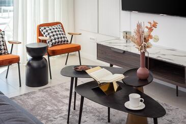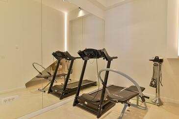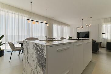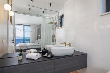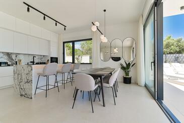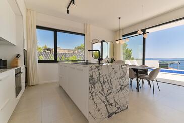 Haus bietet Platz für 10 Gäste. Die Betten sind in Schlafzimmern, die es 5 gibt, innerhalb einer Gesamtfläche von 230m2, angeordnet. Die Gäste haben eine eigene Terrasse zur Verfügung, auf der sie in warmen Sommernächten genießen können. Das Haus bietet Meerblick. Für vollen Genuss und Entspannung gibt es einen privaten Grill für Gäste dieser Unterkunft. Während ihres Aufenthalts können sich Gäste im privaten Schwimmbad entspannen. In der Unterkunftseinheit besteht die Möglichkeit des Mitbringens von Haustieren gegen Aufpreis.
