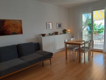 Ferienwohnung bietet Platz für 4 Gäste. Die Betten sind in Schlafzimmern, die es 2 gibt, innerhalb einer Gesamtfläche von 38m2, angeordnet. Die Gäste haben eine eigene Terrasse zur Verfügung, auf der sie in warmen Sommernächten genießen können. Das Apartment bietet Meerblick. Es ist erlaubt, Speisen auf dem Gemeinschafts-Grill vorzubereiten. In der Unterkunftseinheit besteht die Möglichkeit des Mitbringens von Haustieren gegen Aufpreis.
