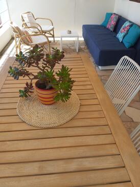 Ferienwohnung bietet Platz für 4 Gäste. Die Betten sind in Schlafzimmern, die es 2 gibt, innerhalb einer Gesamtfläche von 38m2, angeordnet. Die Gäste haben eine eigene Terrasse zur Verfügung, auf der sie in warmen Sommernächten genießen können. Das Apartment bietet Meerblick. Es ist erlaubt, Speisen auf dem Gemeinschafts-Grill vorzubereiten. In der Unterkunftseinheit besteht die Möglichkeit des Mitbringens von Haustieren gegen Aufpreis.