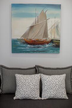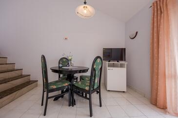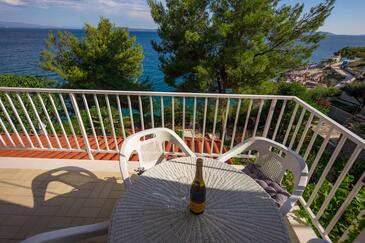 Ferienwohnung bietet Platz für 4 Gäste. Die Betten sind in Schlafzimmern, die es 2 gibt, innerhalb einer Gesamtfläche von 42m2, angeordnet. Die Gäste haben eine eigene Terrasse zur Verfügung, auf der sie in warmen Sommernächten genießen können. Das Apartment bietet Meerblick. Es ist erlaubt, Speisen auf dem Gemeinschafts-Grill vorzubereiten.