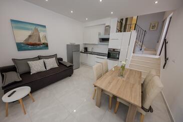 Ferienwohnung bietet Platz für 4 Gäste. Die Betten sind in Schlafzimmern, die es 2 gibt, innerhalb einer Gesamtfläche von 42m2, angeordnet. Die Gäste haben eine eigene Terrasse zur Verfügung, auf der sie in warmen Sommernächten genießen können. Das Apartment bietet Meerblick. Es ist erlaubt, Speisen auf dem Gemeinschafts-Grill vorzubereiten.
