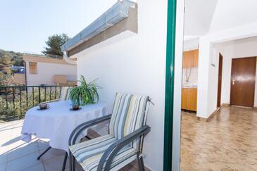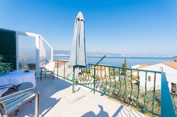 Ferienwohnung bietet Platz für 4 Gäste. Die Betten sind in Schlafzimmern, die es 2 gibt, innerhalb einer Gesamtfläche von 41m2, angeordnet. Die Gäste haben eine eigene Terrasse zur Verfügung, auf der sie in warmen Sommernächten genießen können. Das Apartment bietet Meerblick. Es ist erlaubt, Speisen auf dem Gemeinschafts-Grill vorzubereiten. In der Unterkunftseinheit besteht die Möglichkeit des Mitbringens von Haustieren gegen Aufpreis.