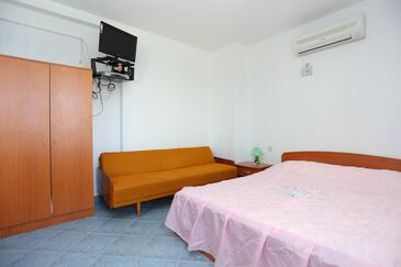 Ferienwohnung bietet Platz für 3 Gäste. Die Betten sind in Schlafzimmern, die es 1 gibt, innerhalb einer Gesamtfläche von 22m2, angeordnet. Die Gäste haben einen eigenen Balkon zur Verfügung, auf der sie in warmen Sommernächten genießen können. Es ist erlaubt, Speisen auf dem Gemeinschafts-Grill vorzubereiten.
