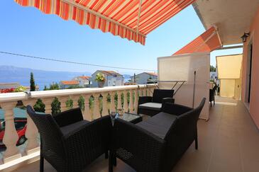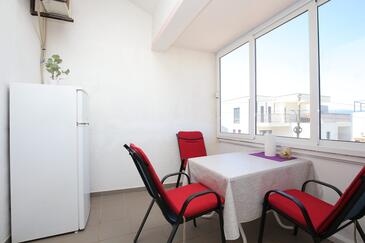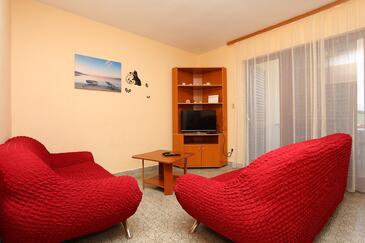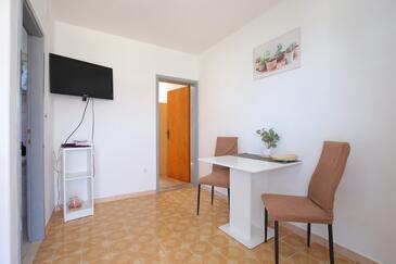 Ferienwohnung bietet Platz für 4 Gäste. Die Betten sind in Schlafzimmern, die es 2 gibt, innerhalb einer Gesamtfläche von 42m2, angeordnet. Die Gäste haben eine eigene Terrasse zur Verfügung, auf der sie in warmen Sommernächten genießen können. Das Apartment bietet Meerblick. Es ist erlaubt, Speisen auf dem Gemeinschafts-Grill vorzubereiten. In der Unterkunftseinheit besteht die Möglichkeit des Mitbringens von Haustieren gegen Aufpreis.