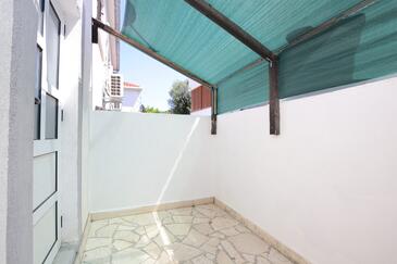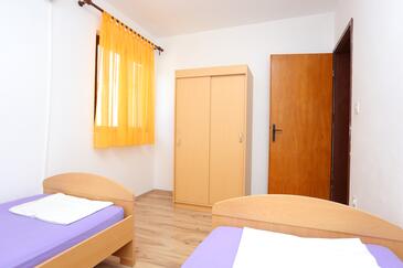 Ferienwohnung bietet Platz für 4 Gäste. Die Betten sind in Schlafzimmern, die es 2 gibt, innerhalb einer Gesamtfläche von 42m2, angeordnet. Die Gäste haben eine eigene Terrasse zur Verfügung, auf der sie in warmen Sommernächten genießen können. Das Apartment bietet Meerblick. Es ist erlaubt, Speisen auf dem Gemeinschafts-Grill vorzubereiten.