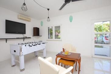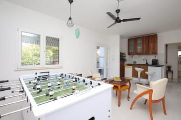 Haus bietet Platz für 8 Gäste. Die Betten sind in Schlafzimmern, die es 4 gibt, innerhalb einer Gesamtfläche von 114m2, angeordnet. Die Gäste haben eine eigene Terrasse zur Verfügung, auf der sie in warmen Sommernächten genießen können. Das Haus bietet Meerblick. Für vollen Genuss und Entspannung gibt es einen privaten Grill für Gäste dieser Unterkunft. In der Unterkunftseinheit besteht die Möglichkeit des Mitbringens von Haustieren gegen Aufpreis. In der gebuchten Unterkunftseinheit zahlt man am Ort ein Depositum ( der Preis ist an der Internetseite angeführt ).