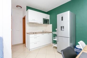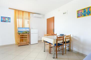 Ferienwohnung bietet Platz für 4 Gäste. Die Betten sind in Schlafzimmern, die es 1 gibt, und in Wohnzimmer, innerhalb einer Gesamtfläche von 33m2, angeordnet. Die Gäste haben eine eigene Terrasse zur Verfügung, auf der sie in warmen Sommernächten genießen können. Das Apartment bietet Meerblick. Es ist erlaubt, Speisen auf dem Gemeinschafts-Grill vorzubereiten.