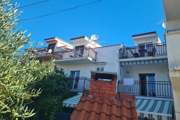 Ferienwohnung bietet Platz für 8 Gäste. Die Betten sind in Schlafzimmern, die es 3 gibt, und in Wohnzimmer, innerhalb einer Gesamtfläche von 66m2, angeordnet. Die Gäste haben einen eigenen Balkon zur Verfügung, auf der sie in warmen Sommernächten genießen können. Das Apartment bietet Meerblick. Es ist erlaubt, Speisen auf dem Gemeinschafts-Grill vorzubereiten. In der Unterkunftseinheit besteht die Möglichkeit des Mitbringens von Haustieren gegen Aufpreis.