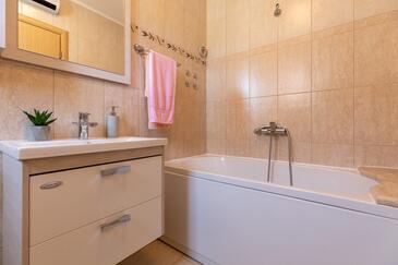 Haus bietet Platz für 6 Gäste. Die Betten sind in Schlafzimmern, die es 4 gibt, und in Wohnzimmer, innerhalb einer Gesamtfläche von 74m2, angeordnet. Die Gäste haben einen eigenen Balkon zur Verfügung, auf der sie in warmen Sommernächten genießen können. Das Haus bietet Meerblick. Es ist erlaubt, Speisen auf dem Gemeinschafts-Grill vorzubereiten.