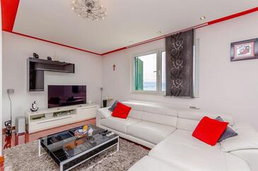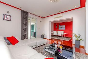 Ferienwohnung bietet Platz für 6 Gäste. Die Betten sind in Schlafzimmern, die es 3 gibt, und in Wohnzimmer, innerhalb einer Gesamtfläche von 113m2, angeordnet. Die Gäste haben eine eigene Terrasse zur Verfügung, auf der sie in warmen Sommernächten genießen können. Das Apartment bietet Meerblick. Es ist erlaubt, Speisen auf dem Gemeinschafts-Grill vorzubereiten.