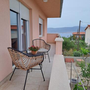 Ferienwohnung bietet Platz für 5 Gäste. Die Betten sind in Schlafzimmern, die es 2 gibt, und in Wohnzimmer, innerhalb einer Gesamtfläche von 88m2, angeordnet. Die Gäste haben einen eigenen Balkon zur Verfügung, auf der sie in warmen Sommernächten genießen können. Das Apartment bietet Meerblick. Es ist erlaubt, Speisen auf dem Gemeinschafts-Grill vorzubereiten.