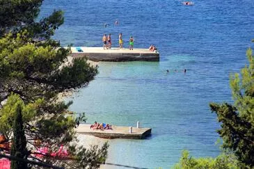 Ferienwohnung bietet Platz für 8 Gäste. Die Betten sind in Schlafzimmern, die es 4 gibt, innerhalb einer Gesamtfläche von 101m2, angeordnet. Die Gäste haben eine eigene Terrasse zur Verfügung, auf der sie in warmen Sommernächten genießen können. Das Apartment bietet Meerblick. Es ist erlaubt, Speisen auf dem Gemeinschafts-Grill vorzubereiten. In der gebuchten Unterkunftseinheit zahlt man am Ort ein Depositum ( der Preis ist an der Internetseite angeführt ).