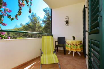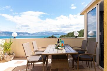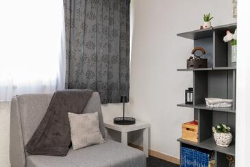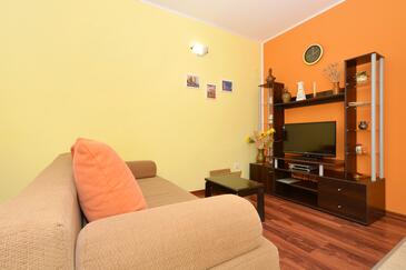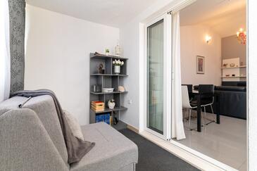 Ferienwohnung bietet Platz für 5 Gäste. Die Betten sind in Schlafzimmern, die es 2 gibt, und in Wohnzimmer, innerhalb einer Gesamtfläche von 43m2, angeordnet. Die Gäste haben eine eigene Terrasse zur Verfügung, auf der sie in warmen Sommernächten genießen können. Das Apartment bietet Meerblick. Es ist erlaubt, Speisen auf dem Gemeinschafts-Grill vorzubereiten.
